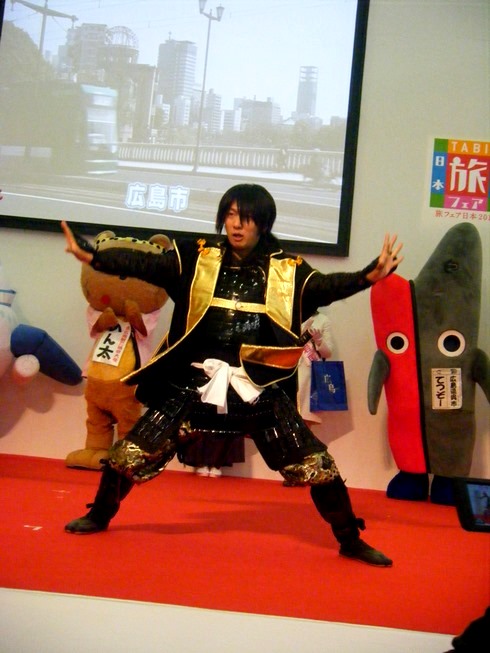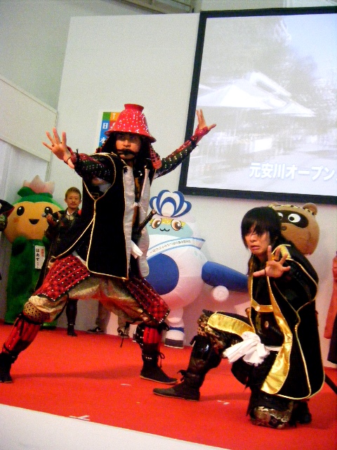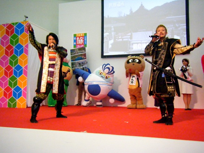 全国各地の観光PRブースがあり、ご当地ゆるきゃらや武将隊など