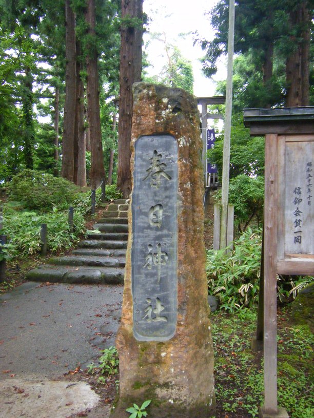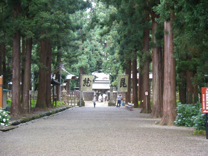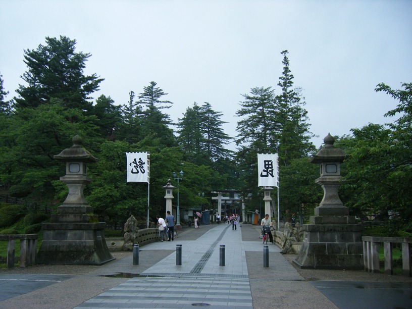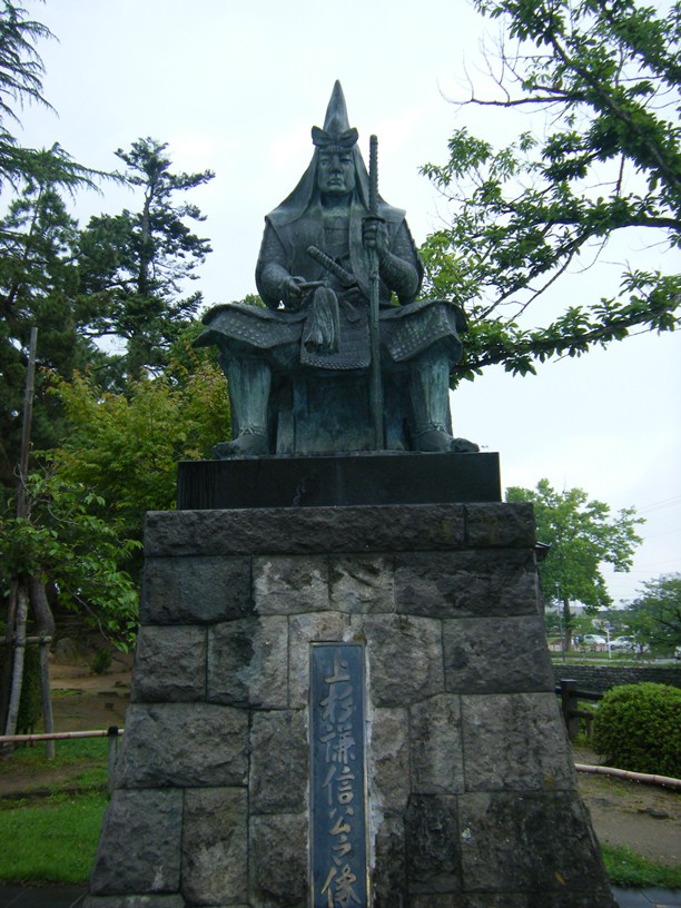 神社の参道を進んでいくと、上杉謙信公の像や、